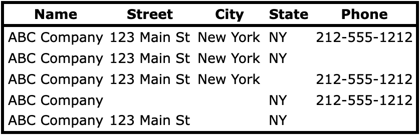 Look at how none of the dummy records above has the same blanks.