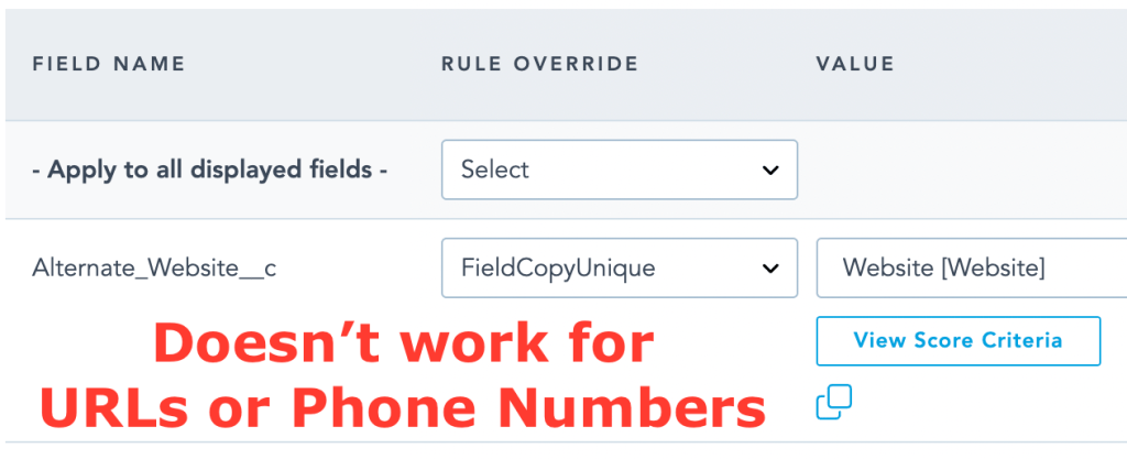 2] the FieldCopyUnique command fails to migrate certain values from losing records to winning records