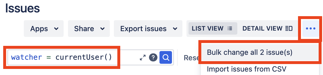 c] walking through the “Bulk Operation” wizard, and choosing “Stop Watching Issues” when prompted