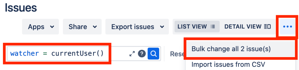 b] searching for watcher = currentUser(), then choosing “Bulk change all X issue(s)” from the hamburger: