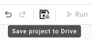 red code blockabove - click the “Save project to Drive” button (it looks like a floppy disk):
