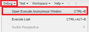 - In the Debug menu, select “Open Execute Anonymous Window”: