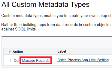- click the “Manage Records” link to the left of “Batch Process App Limit Setting”: